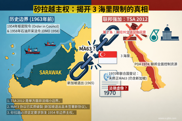 TSA 2012 与 《1974年石油发展法令》(PDA 1974) 的结合,形成了一场针对砂拉越财富的“完美风暴”。通过将州领海限制在3海里,联邦政府变相夺取了大陆架深水区内庞大的石油和天然气资源——而这些领土在历史上和法律上本应属于砂拉越人民。