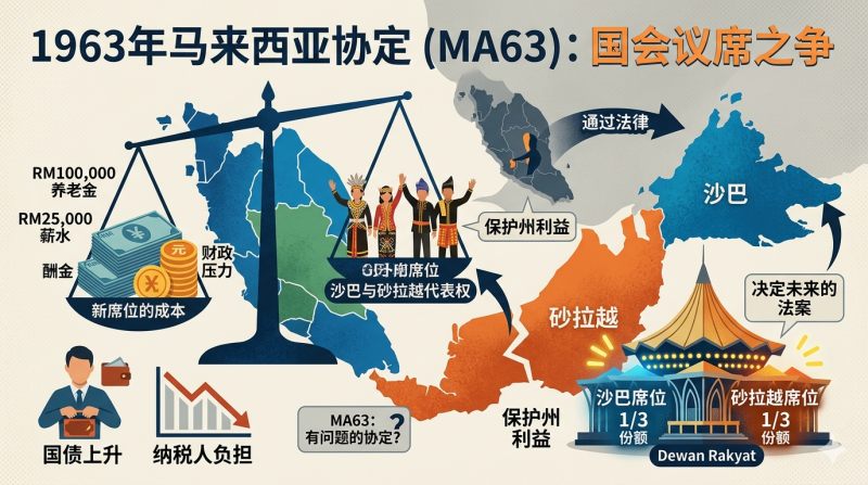 即使在1963年《马来西亚协定》的法律效力存在争议的背景下,砂拉越和沙巴仍提出各占1/3国会席位的要求。其核心论点是:目前的马来亚联邦在国会中占据多数席位,并一直在通过有损沙巴和砂拉越利益的法律。增加席位将使东马的国会议员能够在未来通过的法案和法律中拥有决定权。